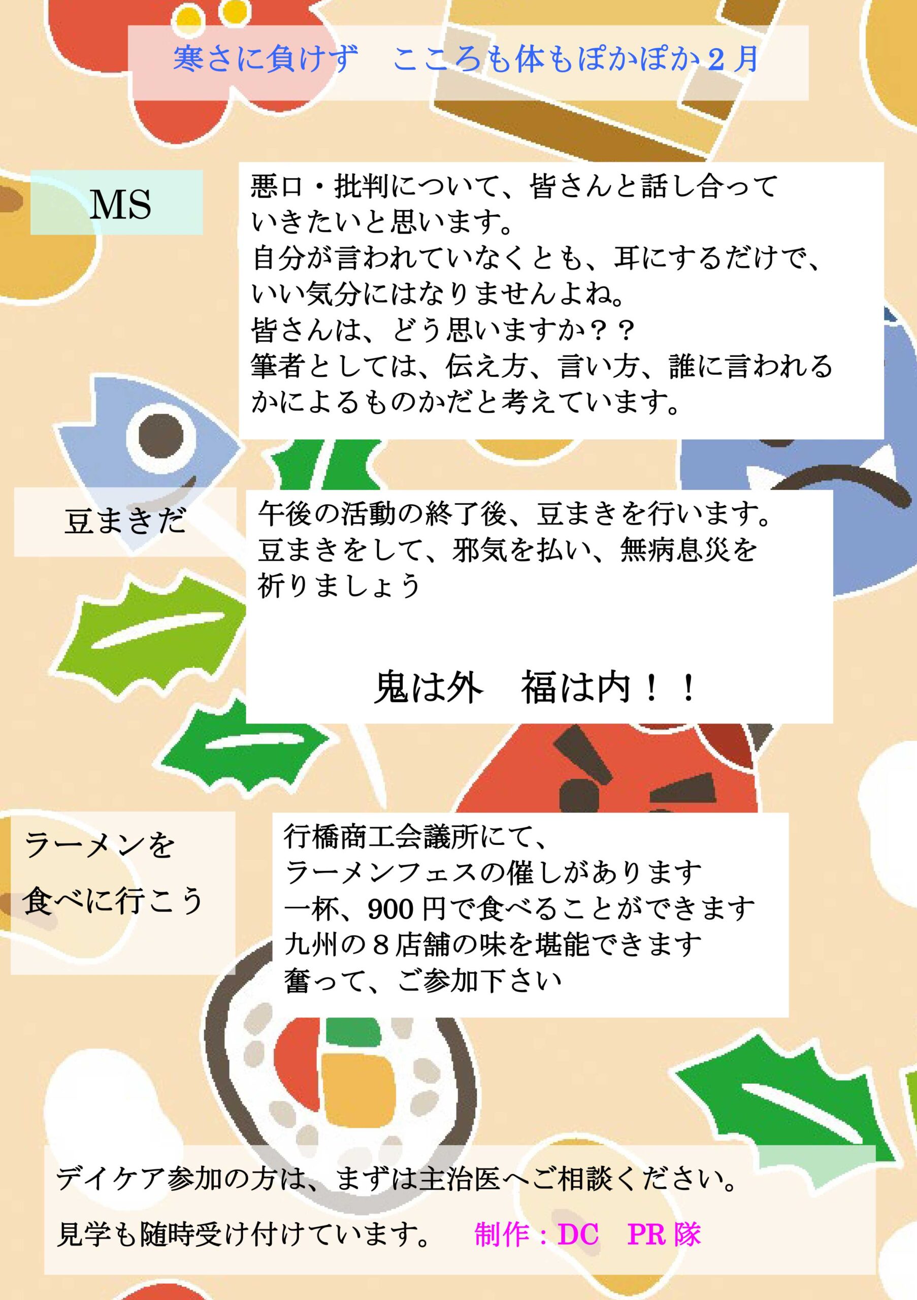 ※本資料は、当院デイケアに参加されている患者様が作成したものです。