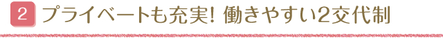 2交代制勤務なので、3交代制のように出勤時間が深夜になることがありません。